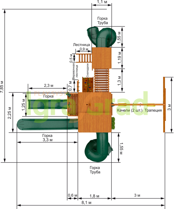 Габариты игрового комплекса для детей составляют: