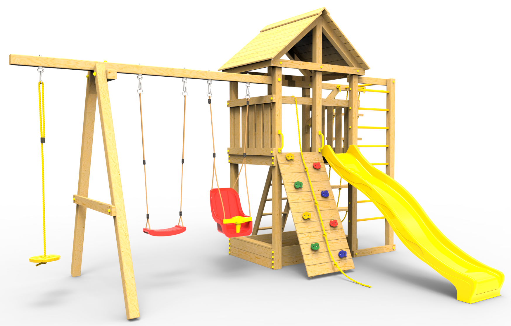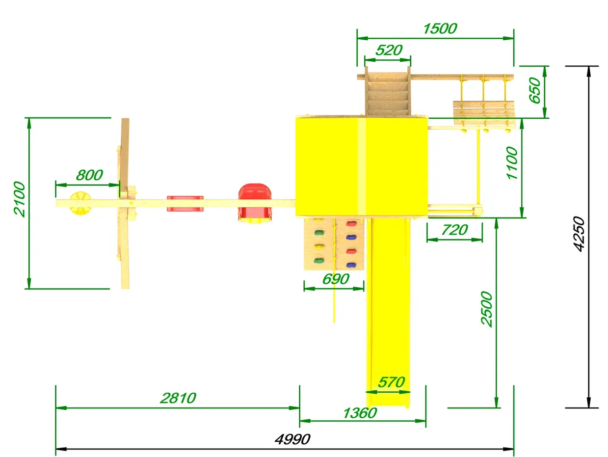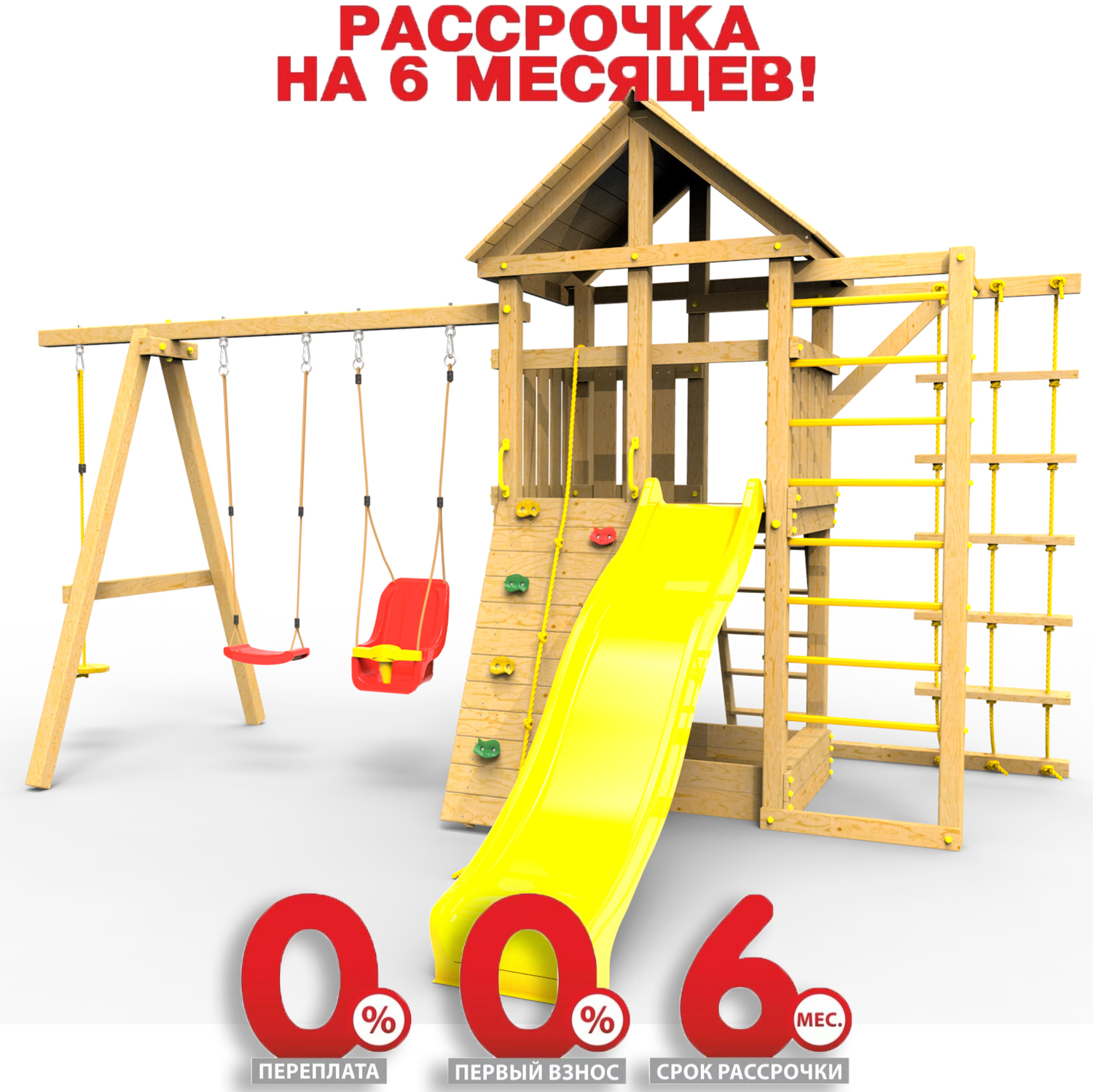 Обращаем Ваше внимание, что фактический цвет детской площадки может отличаться от представленных фото на сайте. Специфика окраски нетоксичными пропитками и красителями допускает отклонения в цветовой гамме отгружаемых изделий. Также обратите внимание, что фактический цвет может отличаться из-за цветопередачи устройства на котором Вы смотрите фото.