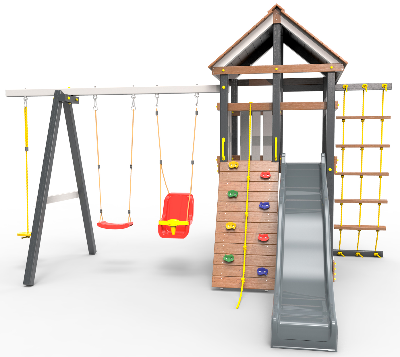 Обращаем Ваше внимание, что фактический цвет детской площадки может отличаться от представленных фото на сайте. Специфика окраски нетоксичными пропитками и красителями допускает отклонения в цветовой гамме отгружаемых изделий. Также обратите внимание, что фактический цвет может отличаться из-за цветопередачи устройства на котором Вы смотрите фото.
