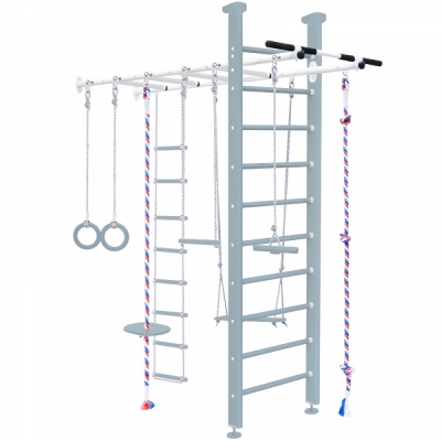 Комплектация: турник вер.лестница, качель, трапеция, лиана кольца, тарзанка, канат,