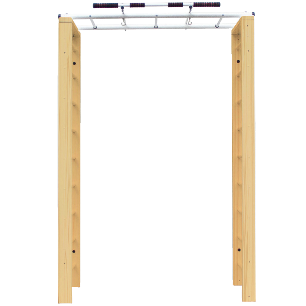 Рукоход комплекса Luca оборудован двумя винтами с кольцом, которые могут использоваться для крепления дополнительного снаряжения, например, гимнастических колец. Комплекс Luca - это удобный и компактный спортивный элемент для развития мышечной силы и координации.